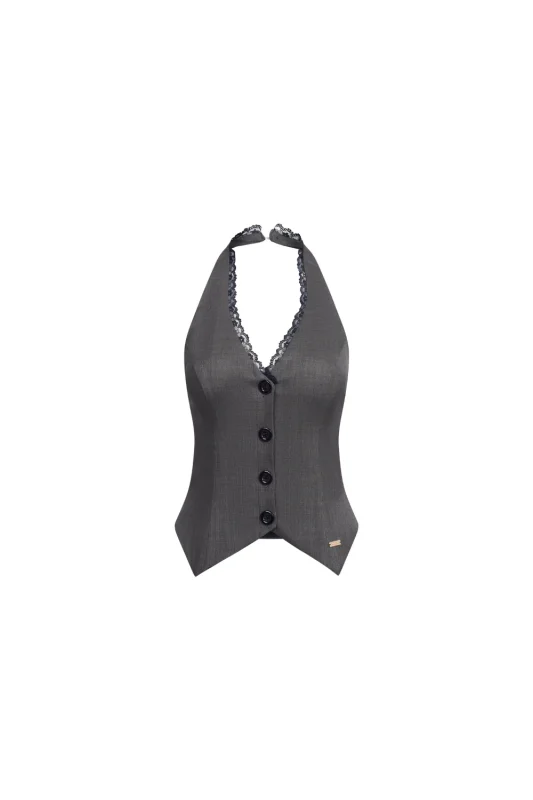 CP Edith Top gây ấn tượng với phom dáng halter cổ yếm, thiết kế gợi nhớ đến những chiếc áo vest nữ cổ điển nhưng được làm mới bằng cách xử lý phom dáng và chi tiết. Phần cổ yếm ôm sát giúp tôn lên bờ vai và vùng cổ thanh mảnh, đồng thời tạo nên cảm giác cao ráo và gọn gàng cho tổng thể vóc dáng. Đây là kiểu dáng được ưa chuộng trong thời trang hiện đại bởi khả năng làm nổi bật đường nét cơ thể mà vẫn giữ được sự thanh lịch cần thiết.